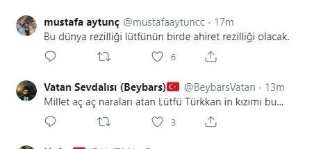 Görüntülere sosyal medyadan tepki veren vatandaşlar, Lütfü Türkkan’ı hedef alarak “Bu adamın ülkücü olduğuna inanan var mı?”, “Millet aç diyen Lütfü Türkkan’ın kızına iyi bakın” yorumunda bulundu.