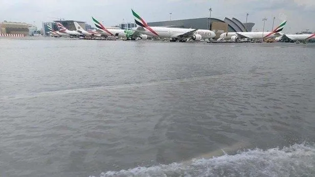 Birleşik Arap Emirlikleri’ndeki selden dolayı Dubai Havalimanı etkilenmiş ve olumsuz hava koşulları nedeniyle gün içindeki uçuşlar iptal edilmişti.