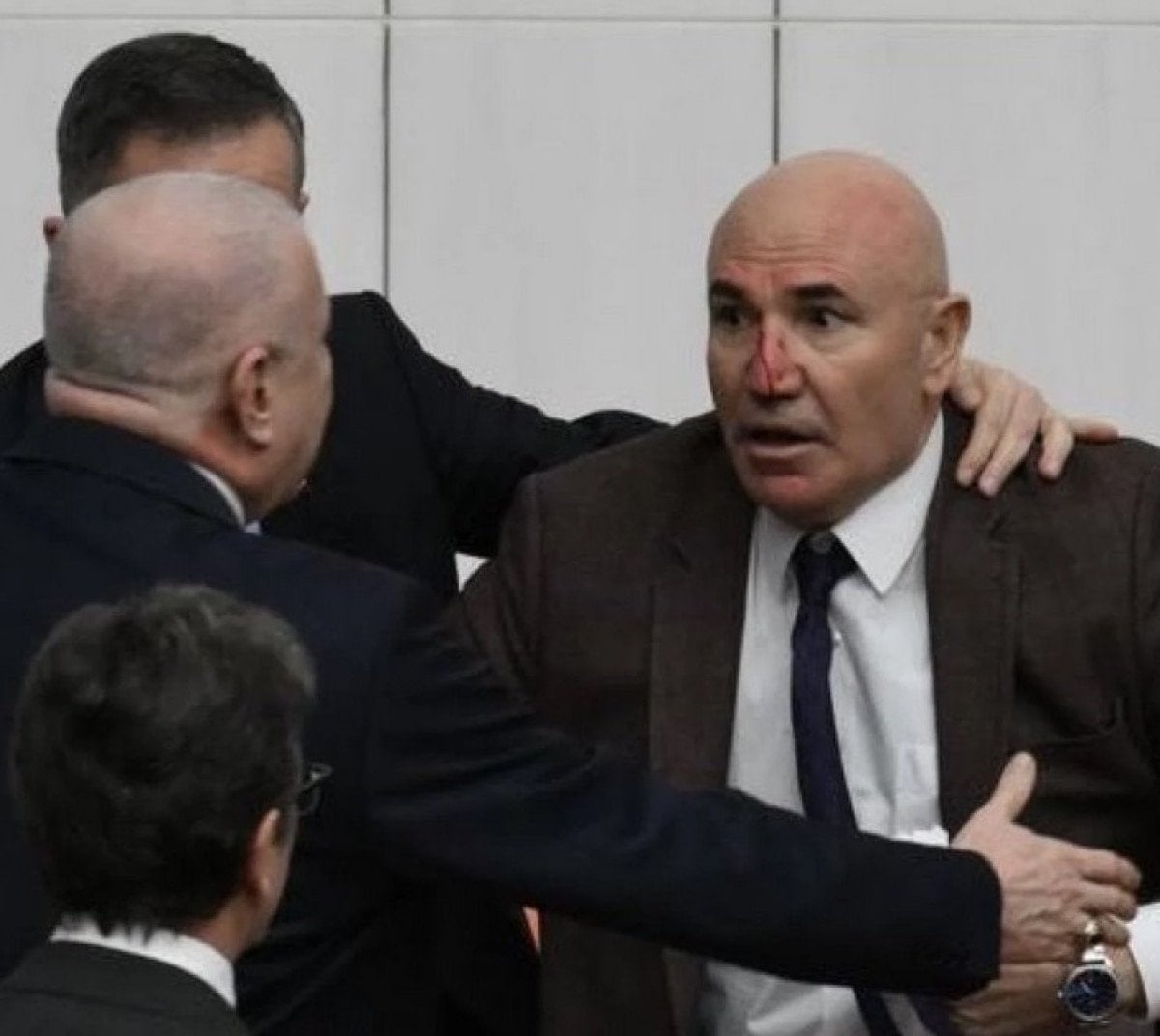 Tansiyonun yükselmesiyle milletvekillerinin birbirini ittiği, bazı vekillerin ise yumruk savurduğu görüldü..