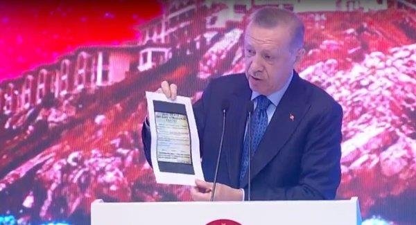 Başkan Erdoğan, “Eskişehir Örfi İdare Kumandanlığı’nın tebliğinde göreceksiniz: ‘Beraberinde 17 uçak dolusu altın ve parayı kaçırmaktayken yakalandılar’… Bay Kemal’in geçen akşam söylediğinden farkı var mı? Aynı değil mi? Cumhurbaşkanı da kaçırmış. Man Adası dediler, oradan 150 bin TL ceza. Ardından bir 100 bin lira daha. Ben de bunları TÜRGEV ve Ensar Vakfı’na veririm dedim. Hiç olmasa Bay Kemal’in bir kaç kuruşu da buralara nasip olsun. Bu paraları nereden bulacağı da önemli. Devletin CHP’ye verdiği paralardan oraya naklediyor.” sözleriyle Kılıçdaroğlu’nun iftiralarına sert tepki verdi.