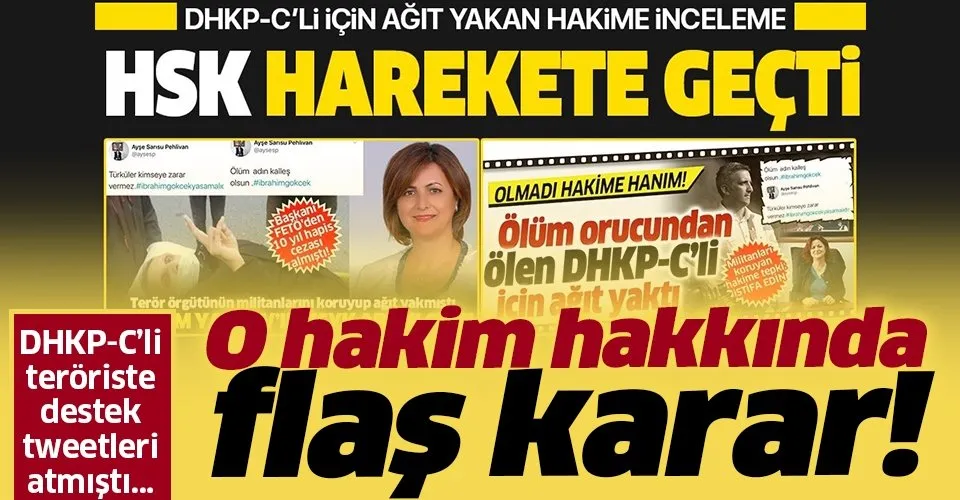 DHKP-C terör örgütü liderliği suçlamasıyla yargılanan İbrahim Gökçek’in örgüt talimatıyla ölüm orucu tutarak hayatını kaybetmesine yargı mensubu oldukları tespit edilen 2 hâkimden destek mesajları gelmişti. HSK destek veren 2 hâkim hakkında soruşturma başlatarak bir hâkimi 3 ay süre ile görevden uzaklaştırmıştı. HSK, Twitter’dan terör bağlantılı sanığa destek mesajları atan bir hâkim hakkında daha harekete geçti. HSK, Ankara hâkimi Leyla Köksal’ın örgüte destek verecek şekilde paylaşımlar yaptığını tespit ederek hakkında soruşturma başlattı. İşte SABAH’tan Atakan Irmak’ın haberinin detayları…