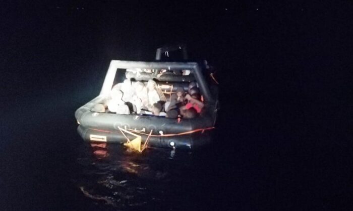 Ayvalık açıklarında, lastik bot içinde bir grup düzensiz göçmen olduğu bilgisini alan Sahil Güvenlik ekipleri harekete geçti.
