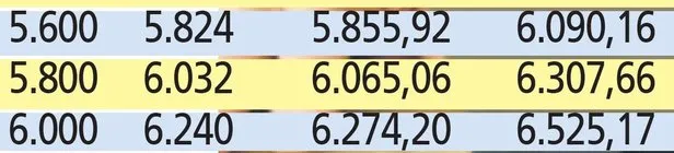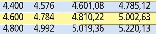 En yüksek aylık ise ek ödeme dahil 6 bin 270 liradan 6 bin 556 liraya çıkacak. Haziran enflasyonuna göre tutarlar artabilecek.