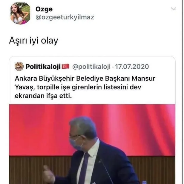 Özge Türkyılmaz; sosyal paylaşım sitesi Twitter’daki şahsi hesabından İstanbul Büyükşehir Belediyesi’nde çalıştığını duyurdu ve “Güzel odamdan günaydın” ifadelerini kullandı.