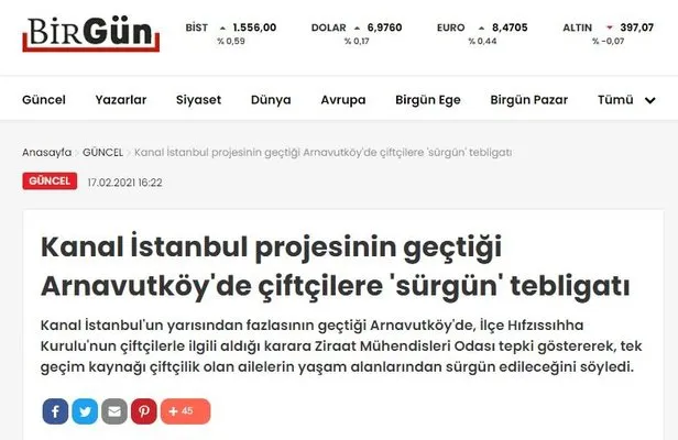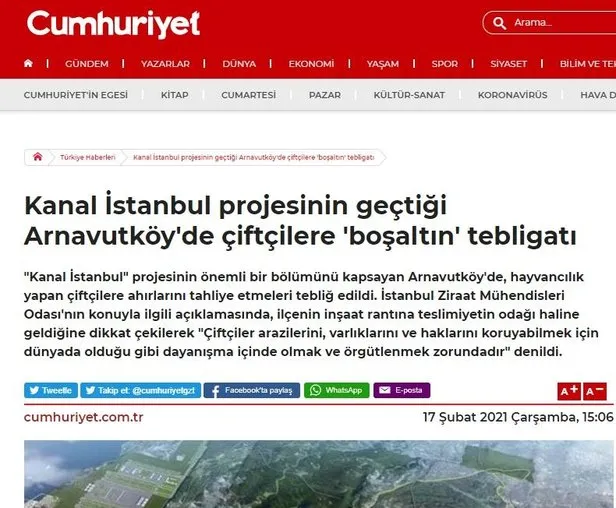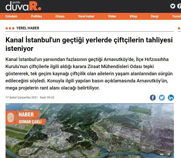 CHP yanlısı haberleriyle bilinen FOX, Birgün, Cumhuriyet, Duvar ve Tele1 gibi medya organları yine asılsız iddialarla algı yaratma peşine düştü. Arnavutköy Kaymakamlığı, söz konusu medya organlarının gündeme getirdiği “Kanal İstanbul’un geçtiği yerlerde çiftçilerin tahliyesi isteniyor” şeklindeki haberlerin gerçeği yansıtmadığını açıkladı.