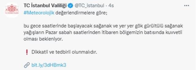 İstanbul’da bu gece yarısından itibaren etkili olacak sağanak yağış konusunda Valilik’ten de uyarı geldi.