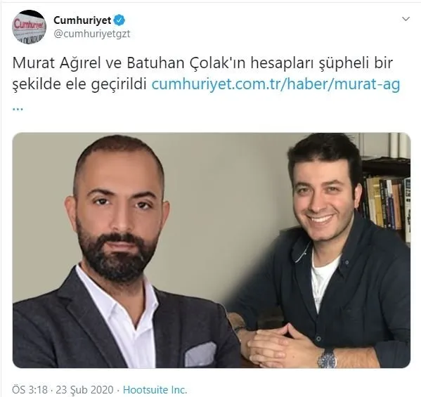 ODA TV’nin Libya’da şehit düşen MİT mensubunun kimliklerini ifşa etmesi gündemde büyük tepkiyle karşılandı. MİT Kanunu’na açıkça aykırı olan bu haberi ODA TV’nin hemen arkasından Yeniçağ gazetesi de servis etti. Servis etmekle kalmayan Yeniçağ Genel Yayın Yönetmeni Batuhan Çolak ve Murat Ağırel kendi sosyal medya hesaplarından konuyla ilgili paylaşımlarda bulundu. Durumdan sıyrılmaya çalışan Ağırel ve Çolak sosyal medya hesaplarının çalındığını iddia ederek MİT’i hedef aldıkları operasyondaki rollerinin üstünü örttü.