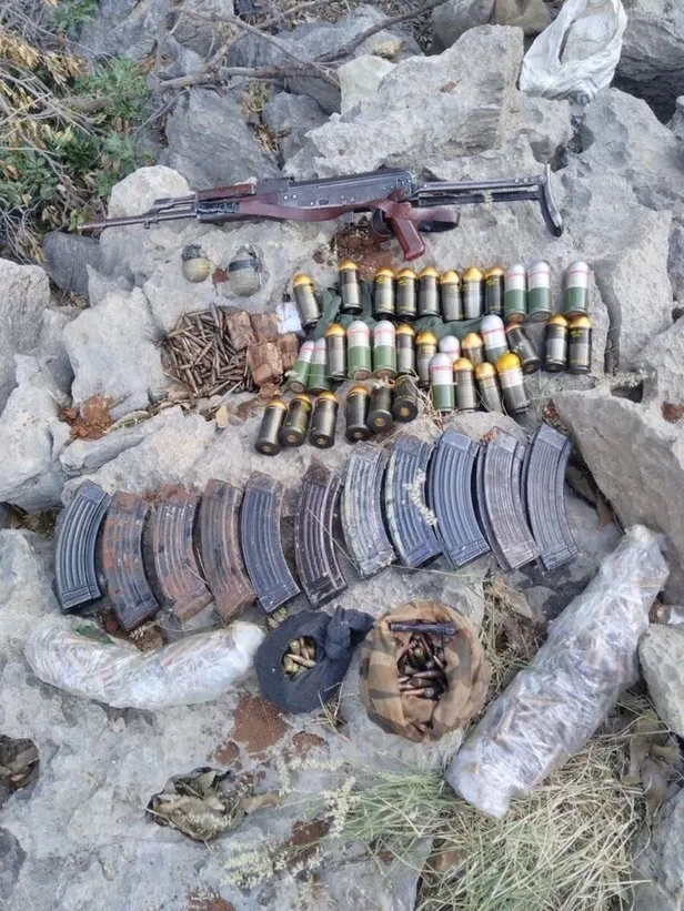 Açıklamada, teröristlere ait çok sayıda silah ve mühimmatın ele geçirildiği belirtilerek, ”Teröristlere nefes aldırmayan Kahraman Komandolarımızın Haftanin bölgesinde yürüttükleri yoğun arama-tarama faaliyetleriyle; 4 adet AK-47 piyade tüfeği, 40 adet el bombası, 400 adet AK-47 mühimmatı, 430 adet Doçka uçaksavar mühimmatı, 120 adet 12.7 milimetre uçaksavar mühimmatı, 1010 adet 5.56 milimetre mühimmat, 16 adet 81 milimetre havan mühimmatı, 3 adet 120 milimetre havan mühimmatı, 34 adet 40 milimetre bombaatar mühimmatı, 64 adet tapa, 18 adet RPG -7 sevk fişeği, 17 adet antipersonel RPG-7 mühimmatı, 3 adet antitank RPG-7 mühimmatı, 1 adet Doçka namlusu, 150 adet av fişeği, 5 kilo yaprak ve toz barut, 4 adet elektrikli fünye, 2 kilo TNT kalıbı, 1 adet keskin nişancı dürbünü ele geçirildi” denildi.