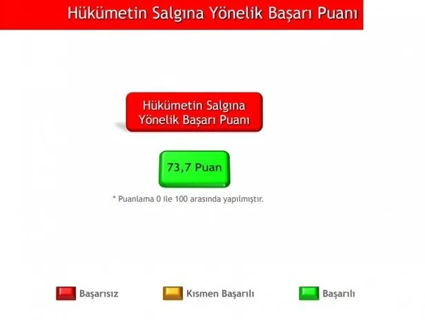 Araştırmada, hükümetin salgına yönelik başarı puanı, 100 üzerinden 73,7 olarak hesaplandı.