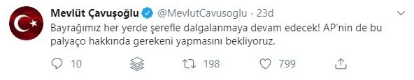 “Bayrağımız her yerde şerefle dalgalanmaya devam edecek! AP’nin de bu palyaço hakkında gerekeni yapmasını bekliyoruz.”